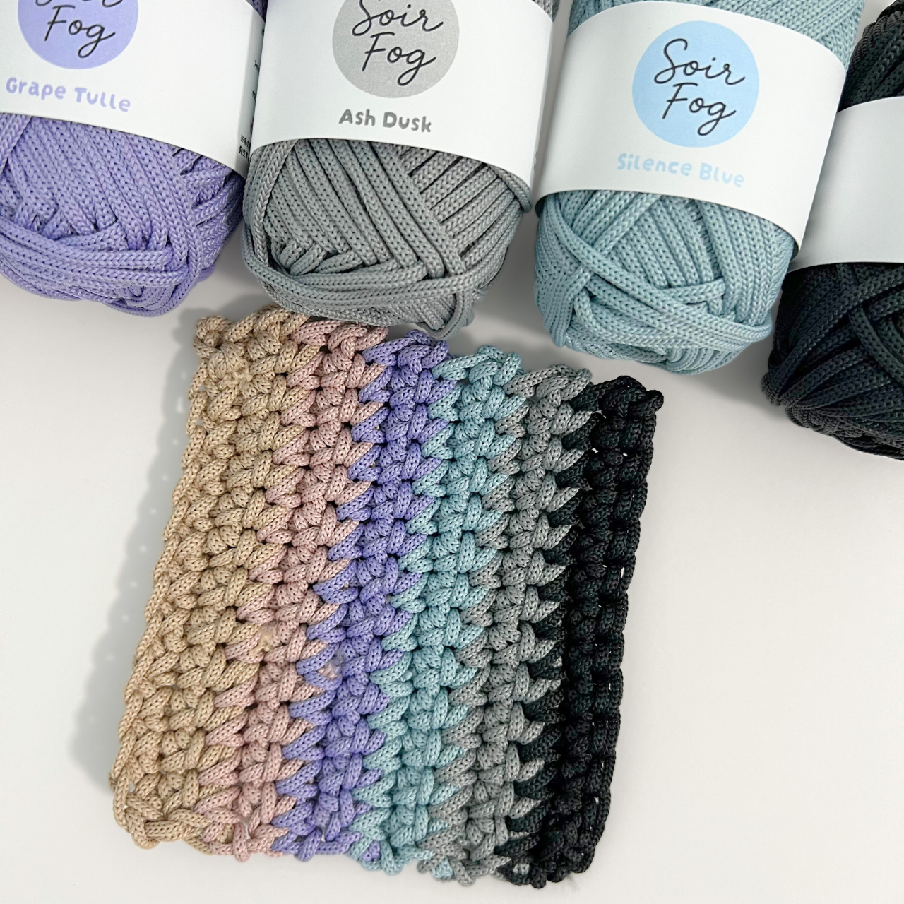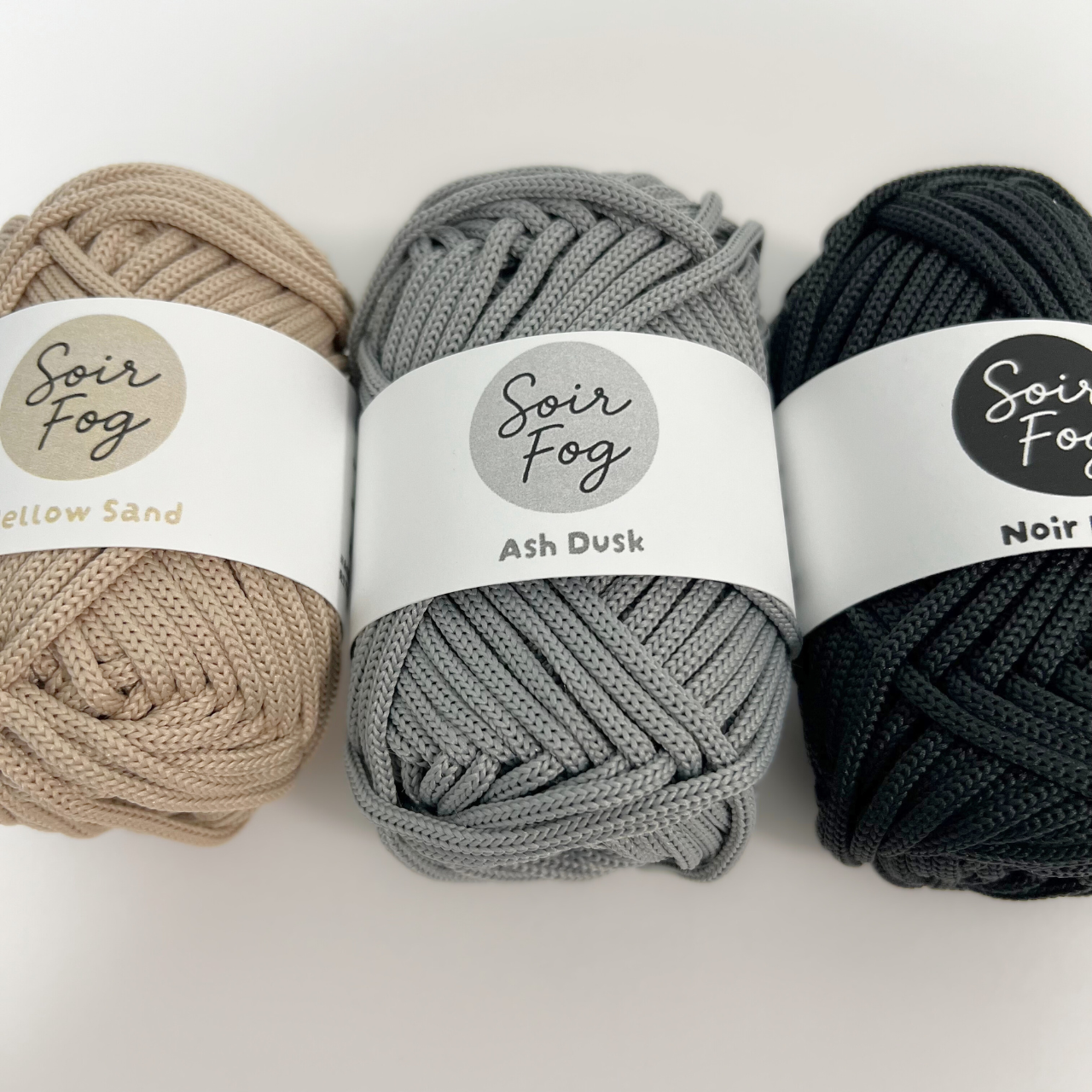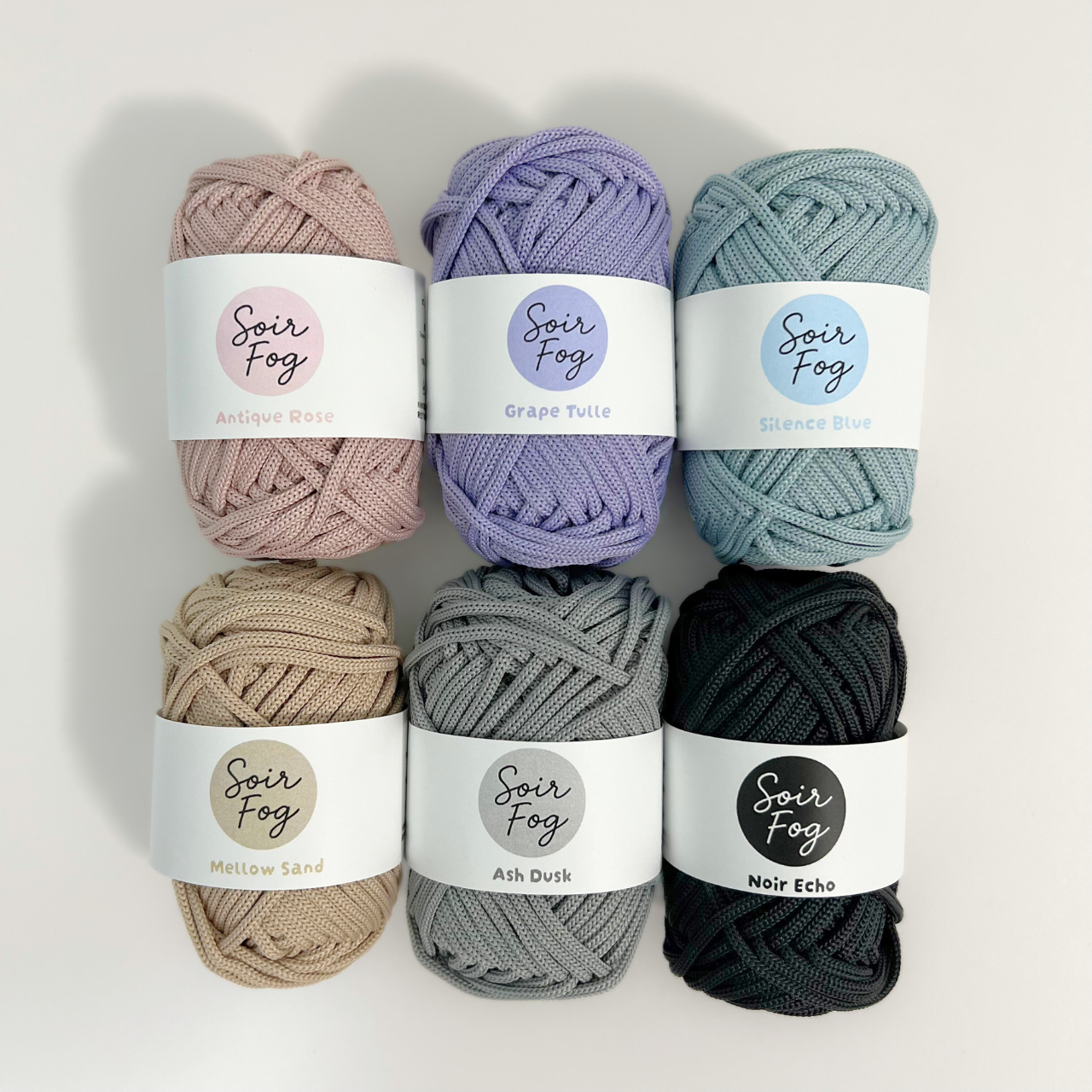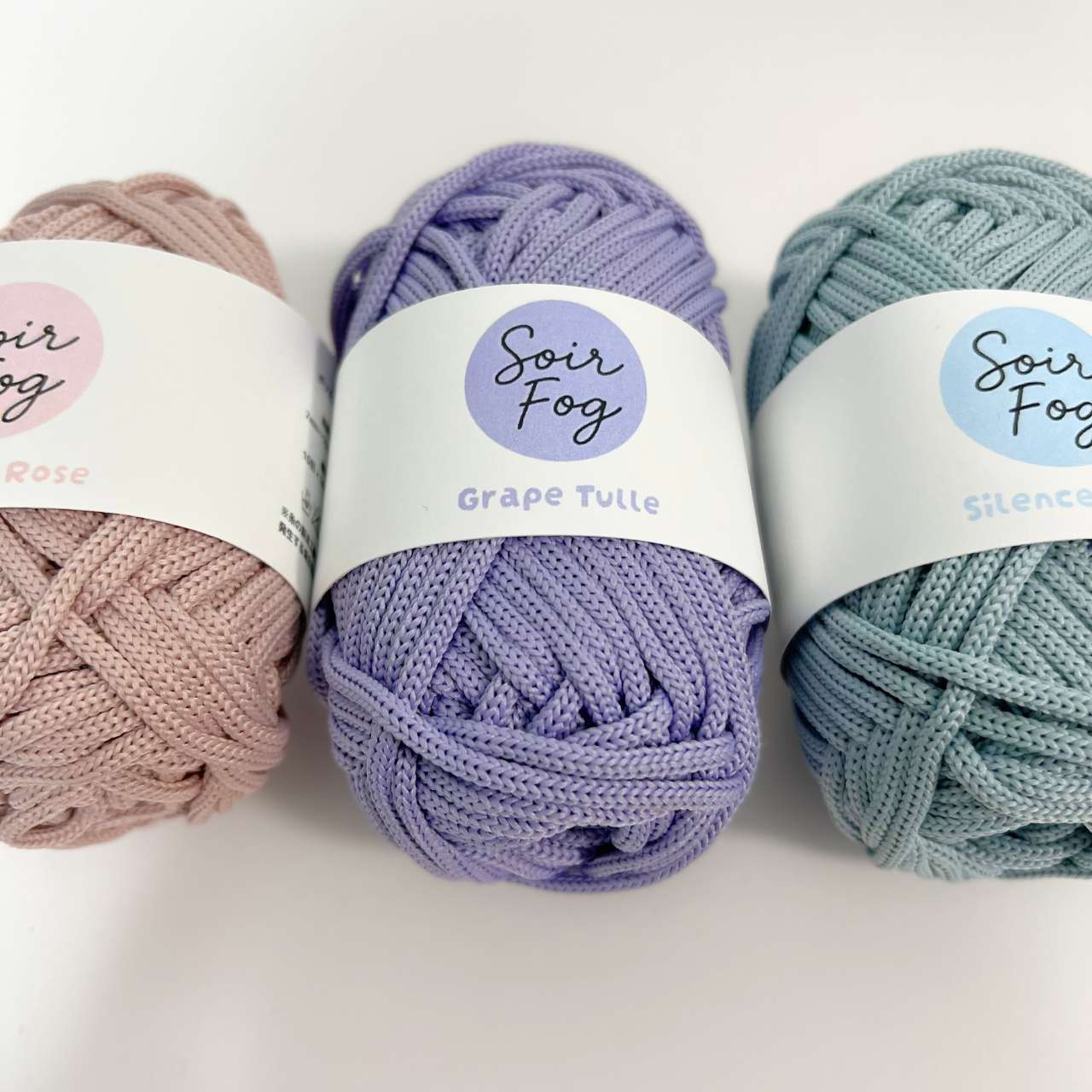 Soir Fog(ソワール・フォグ)は、落ち着いたくすみカラーとしっかりとした質感が魅力のマクラメヤーン。